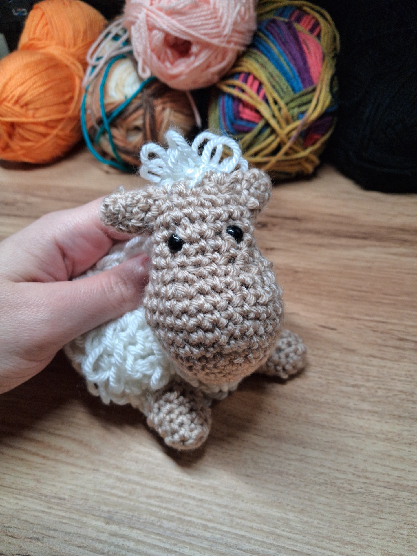 Tato ovečka se háčkuje z krátkého sloupku a smyčkového stehu, kterým ovečce vytvoříme kudrnatou srst jako od kadeřníka.